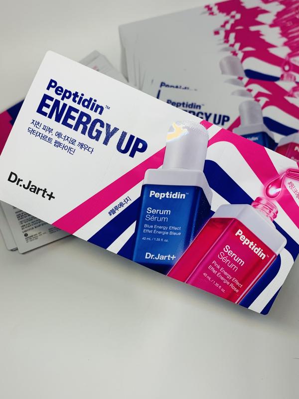 Тестер набор пробников сыворотка Dr.Jart+ Peptidin Serum омоложение эластичность тонус Н902 Набор пробников Dr.Jart+ две очень интересных сыворотки для лица Peptidin Serum, созданных на основе новейших передовых технологий. В их основе комплекс из 8 пептидов, направленный на омоложение кожи, придания ей тонуса и эластичности, повышение ее самоувлажнения. цена за набор - 1 лист (2 шт), в наличии 100 набор красная — Энергетическая пептидная сыворотка Упругость и Сияние Dr.Jart+ Peptidin Serum Pink Energy — глубоко увлажняет, тонизирует, улучшает цвет лица и замедляет процессы старения, придает естественное сияние. Комплекс из 8 пептидов визуально разглаживает морщины, уменьшает их глубину и ускоряет процессы обновления в клетках эпидермиса. Содержит также экстракты цветов и листьев персика, которые выравнивают тон кожи, делают ее мягкой и бархатистой, возвращают лицу естественное сияние и тонус. При ежедневном применении сыворотки укрепляется тургор кожи и заметно подтягивается овал лица, устраняются кожные заломы, краснота и сухость; синяя — Пептидная сыворотка Лифтинг и Плотность Dr.Jart+ Peptidin Serum Blue Energy — укрепляет клетки кожи, предотвращая старение, повышая эластичность и минимизируя выраженность морщин. Комплекс из 8 пептидов визуально разглаживает морщины, уменьшает их глубину и ускоряет процессы обновления в клетках эпидермиса. Содержит также экстракт огуречника, в котором большое количество гамма-линолевой кислоты — одной из незаменимых жирных кислот. Делает кожу ровной, гладкой и подтянутой. В этот комплекс вошли такие пептиды: Ацетилгексапептид-8 — уменьшает морщины и улучшает эластичность кожи; Пальмитоил тетрапептид-7 — защищает белок, ответственный за клеточное восстановление; Пальмитоил трипептид-1 — восстанавливает межклеточные липиды, устраняет сухость кожи; Пальмитоил пентапептид-4 — ускоряет синтез коллагена; Коппер трипептид-1 — эффективно регенерирует поврежденные ткани, используется даже в послеоперационном уходе; Ацетилгексапептид-9 — состоит из аминокислот с высокой степенью чистоты, омолаживает кожу; Трипептид-1 — способствует образованию факторов роста; Нонапептид-1 — снижает синтез меланина, выравнивает тон кожи. Набор подходит для всех типов зрелой кожи. Состояние новое, как на фото. Отправка ежедневно! - на сайте - по полной или минимальной предоплате