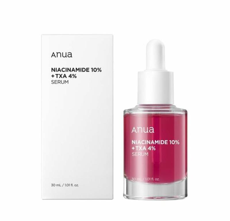 Anua - Niacinamide 10% + TXA 4% Serum – осветляющая сыворотка с ниацинамидом и транексамовой кислотой, действие которой направлено на работу с гиперпигментацией и неровным тоном кожи. Обладает мягким осветляющим действием, способствует устранению и предотвращению гиперпигментации. Выравнивает тон кожи и возвращает ей здоровое сияние, работает с постакне и покраснениями. Комфортно увлажняет кожу, предотвращая потерю влаги и сухости. Подходит для всех типов кожи, склонной к неровностям тона и нарушениям пигментации. Активные компоненты: • Ниацинамид – способствует выравниванию тона кожи, оказывает деликатное осветляющее действие и предотвращает гиперпигментацию, оказывает успокаивающее и противовоспалительное действие, препятствует появлению высыпаний и покраснений. • Транексамовая кислота – регулирует выработку меланина, осветляет гиперпигментацию, успокаивает и снимает покраснения, выравнивая тон кожи. • Арбутин – оказывает мощное осветляющее действие, активно работая с пигментными пятнами и неровностями тона кожи. • Гиалуроновая кислота – глубоко увлажняет кожу, сохраняя влагу внутри, препятствует обезвоживанию и сухости, а также способствует сохранению гладкости и упругости кожи. • Экстракт эклипты – оказывает противовоспалительное и успокаивающее действие. • Масло макадами – активно питает и смягчает кожу, восстанавливает защитный барьер и препятствует потере влаги. • Экстракт полыни – снижает чувствительность, устраняет покраснения и раздражения. • Центелла азиатская – активно успокаивает кожу, снимает покраснения и раздражения, снижает чувствительность и обладает смягчающим действием. • Витамин С – способствует выравниванию тона кожи, осветляет пигментные пятна, стимулирует выработку коллагена и оказывает мощное антиоксидантное действие, защищая кожу от свободных радикалов. Способ применения: нанести необходимое количество средства на очищенную и тонизированную кожу лица, распределить до полного поглощения.