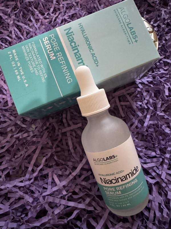 Профессиональная сыворотка с ниацинамидом и гиалуроновой кислотой Algo labs+ Niacinamide pore refining serum Привезена с Америки под заказ для косметологии 60 ml (полноразмерная) Ниацинамид - улучшает текстуру и тон кожи, осветляет цвет лица, очищает поры, укрепляет барьер и помогает удерживать влагу, придавая коже молодость и сияние. Гиалуроновая кислота - содержит глубоко увлажняющие ингредиенты, которые проникают в кожу, делая ее упругой и пухлой, заметно помогая уменьшить выраженность мелких морщин, придавая коже более здоровый вид.