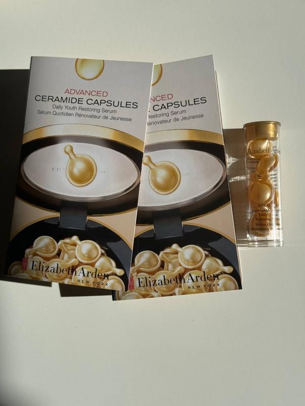 Працюємо по повній передплаті на реквізити ФОП. Капсули для обличчя Elizabeth Arden Advanced Ceramide Capsules Daily Youth Restoring Serum 7шт ціна 290грн Якщо ви почуваєтеся молодою і енергійною, готові блищати і підкорювати вершини, а дзеркало починає з вами тихенько сперечатися... Не слухайте його! Щоб переконати його у своїй правоті, у вас є "Капсули для обличчя" від бренду Elizabeth Arden. Ваша секретна та потужна зброя. Елітний догляд за шкірою – це глибока повага до свого внутрішнього світу та зовнішнього вигляду! Особливості Advanced Ceramide Capsules Daily Youth Restoring Serum від бренду Elizabeth Arden: - Підходять для всіх типів шкіри; - призначені для жінок віком від 30 років; - активно бореться з ознаками старіння шкіри завдяки CLX (Ceramide Lipid Complex); - Вирівнюють текстуру шкірного покриву; - формула подвійного ретинолу розгладжує зморшки, стимулює вироблення колагену; - вітамін Е захищає шкіру від зовнішніх факторів та інтенсивно зволожує її. - Відновлює здоровий колір та пружність епідермісу.