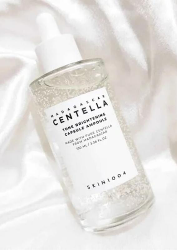 SKIN1004 Madagascar Centella Tone Brightening Capsule Ampoule - сыворотка для лица на основе экстракта центеллы азиатской, которая успокаивает кожу и снимает раздражения. Средство эффективно осветляет пигментные пятна благодаря содержанию ниацинамида и транексамовой кислоты. Пробиотик заботится о укреплении микробиома и повышает устойчивость кожи к воздействию внешних факторов, а аргинин увлажняет эпидермис. Осветляет, успокаивает, выравнивает тон и придает здоровое сияние, без жирного финиша. Ампула увлажняет и смягчает. Легкая текстура со многими капсулами быстро впитывается, высвобождая активные компоненты. Средство уменьшает видимость пигментных пятен и следов от акне, не вызывает фоточувствительность и раздражение. Подходит для всех типов кожи и регулярного применения утром и вечером. Активные компоненты: экстракт центеллы азиатской - обладает успокаивающими и антибактериальными свойствами, стимулирует процессы регенерации, ниацинамид - укрепляет защитный барьер кожи, регулирует секрецию себума, обладает антиоксидантными, противовоспалительными и осветляющими свойствами, сужает поры, транексамовая кислота - оказывает противовоспалительное действие, уменьшает покраснение, выравнивает тон кожи, эффективно осветляет пигментацию, пробиотик - укрепляет микробиом кожи и восстанавливает его баланс, повышая его устойчивость к воздействию внешних факторов, аргинин - аминокислота, увлажняет кожу. Действие средства: успокаивает, регенерирует, освещает, укрепляет микробиом, увлажняет.
