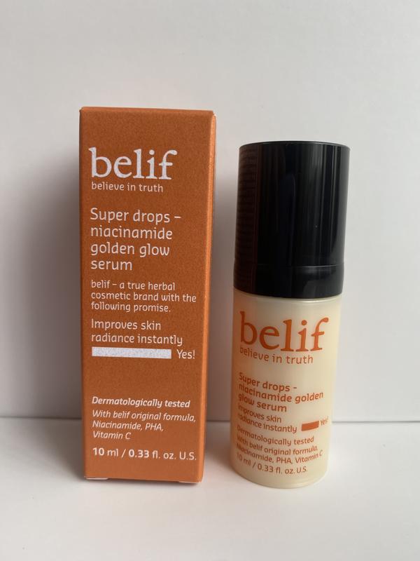 Люкс сироватка -праймер для обличчя Belif Super Drops Niacinamide Vitamin C Golden Glow Serum, 10 мл Один з топів брендів корейської косметики Забезпечує миттєве покращення тонусу шкіри, зволоження шкіри та синергію зволоження з аква-бальзамом. Ця сироватка-праймер покращує зволоження та колір обличчя, усуваючи сухість і потемніння шкіри. Делікатно готує шкіру до тривалого макіяжу. Пройшла тестування на чутливих типах шкіри та некомедогенний тест для безтурботного використання на чутливих типах шкіри. Спрямована на 4 складові сяючої шкіри belif: зволоження, вирівнювання тону шкіри, вирівнювання текстури шкіри та створення здорового шкірного бар'єру 💛Суперосвітлюючий ефект- Самостійно або як праймер перед макіяжем забезпечує миттєвий ефект освітлення шкіри з додаванням мікроперлин. Забезпечує ефект розмивання пор, що додає шкірі гладенького, сяючого вигляду. Також містить ніацинамід та PHA, допомагає вирівняти тон і текстуру шкіри, надаючи їй молодшого вигляду. 💛Надлегка- Легка, але водночас зволожуюча - ця сироватка не залишає відчуття жирності чи маслянистості на шкірі. Ідеально підходить для нанесення як завершальний етап догляду за шкірою або як праймер перед макіяжем для природного сяйва 💛Суперзволоження -Поряд з гіалуроновою кислотою для посилення зволоження шкіри, містить комплекс ліпідів, що імітують шкірний бар'єр, який утримує вологу для більш тривалого зволоження. 💛Надзвичайно ефективний засіб - Клінічно доведено, що він покращує тонус шкіри та підвищує рівень її зволоженості