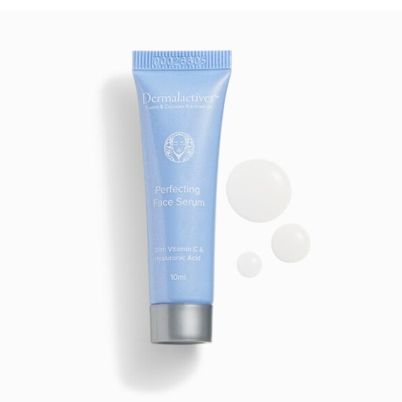 dermalactives perfect face serum 10ml. Совершенствующая сыворотка для лица Осветляет кожу и обеспечивает антиоксидантную защиту. Коллагеновые антивозрастные сыворотки для лица и шеи. Откройте секрет сияющей, сияющей кожи с нашей сывороткой Dermalactives Perfecting. Эта роскошная формула сочетает в себе мощный комплекс витамина С и гиалуроновой кислоты, разработанный для осветления, увлажнения и выравнивания тона кожи, устранения пигментных пятен и омоложения кожи. Почему вам это понравится: Осветляет и выравнивает тон. Борется с темными пятнами и пигментными пятнами, помогая выровнять тон кожи и придать ей естественное сияние. Увлажняющая, но легкая шелковистая текстура быстро впитывается, не оставляя жирных следов. Идеально сочетается с увлажняющим кремом. Используйте его отдельно или в сочетании с вашим любимым кремом для достижения наилучших результатов. Обещание чистой красоты. Не содержит парабенов, сульфатов, минерального масла, вазелина и отдушек — идеально подходит для всех типов кожи, даже чувствительной. Сияние молодости каждый день. Кожа становится мягкой, гладкой и заметно более молодой. 10ml - 999 (замкость2436) 50ml - 12200 (под заказ)
