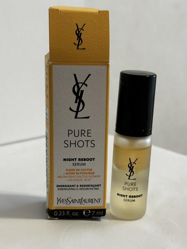 ♥️Ночная восстанавливающая сыворотка для лица Yves Saint Laurent Pure Shots Night Reboot♥️ ✨ Оригинальный Миниатюра 🌟 7 мл 💎 Сыворотка содержит роскошный комплекс активных компонентов: 🌵 Лунный кактус и 💧 гликолевая кислота. 🔹 Гликолевая кислота 🧪 - отшелушивает кожу, способствует ее обновлению ✨ и улучшает тон лица 🌸. 🔹 Лунный кактус 🌵 - цветет всего 6 часов в год | и помогает заметно уменьшить признаки усталости 😌характерные для жизни в городской среде 🏙️, уже первого утра
