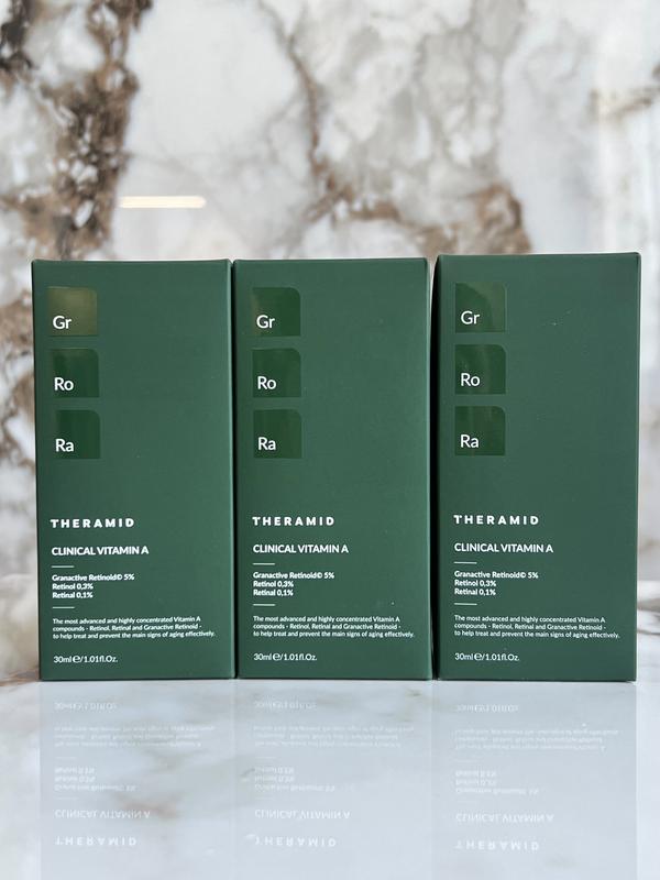 Оригінал. Нова. Запакована. В наявності Термін до серпня 2028р Сироватка із висококонцентрованим вітаміном A THERAMID Clinical Vitamin A 30 мл Надефективний серум проти старіння з ретинолом, ретиналем і ретиноїдом Granactive. Цей продукт ідеально підходить для тих, хто шукає приголомшливих результатів проти старіння. Дуже потужна комбінація різних форм вітаміну А у дуже високих дозах. Vitamin C c-tetra azid azelaic acid . Він спеціально розроблений для тих, хто має попередній досвід використання ретиноїдів і все ще прагне покращити свої результати з ретиноїдом. Клінічний вітамін А здатний ініціювати клітинну регенерацію та вироблення колагену, щоб ефективно розгладити тонкі лінії та зморшки, підвищуючи сяйво та гладкість вашої шкіри. Активні компоненти: - 5% Granactive Retinoid. Розчинна система гідроксипінаколону ретиноату. Удосконалена безрецептурна форма прямої ретиноєвої кислоти, яка ефективніша проти ознак старіння, ніж усі інші ретиноїди, без будь-яких типових подразнень і недоліків ретинолу. - 0,3% ретинолу. Один із найефективніших активних інгредієнтів проти старіння завдяки своїй здатності стимулювати вироблення колагену та прискорювати оновлення клітин. Це помітно покращує еластичність, пружність і гладкість шкіри для більш омолодженого вигляду. Ми інкапсулювали ретинол, щоб посилити результати формули проти старіння: запобігання окисленню, продовження терміну придатності та покращення переносимості шкіри. - 0,1% ретиналю. Ретиналь є прямим попередником ретиноєвої кислоти та однією з найпотужніших і ефективних форм вітаміну А, який використовується для усунення зморшок і тонких ліній, покращує еластичність і нерівну структуру шкіри. Усе це без жодних можливих побічних ефектів ретинолу. Спосіб використання: нанесіть невелику кількість засобу на чисту шкіру ввечері. М’яко помасажуйте кінчиками пальців до повного поглинання. Зранку використовуйте сонцезахист. Для початківців: використовуйте 2 дні, потім 2 дні перерви. Збільшуйте використання у своєму власному темпі, поки не стане безпечним для щоденного використання (кожної ночі). Після засобу нанесіть відновлюючий крем.