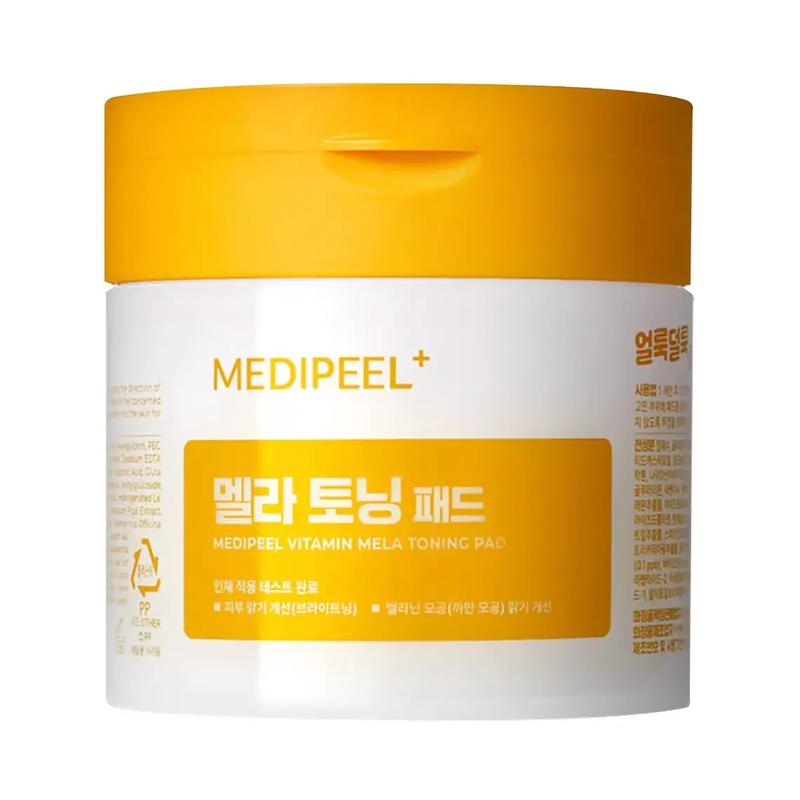 Тонизирующие пилинг-диски с витаминами для сияющей и ровной кожи MEDI-PEEL Vitamin Mela Toning Pad -- это тонизирующие диски, насыщенные витаминами и активными компонентами, эффективно осветляют тон кожи, уменьшают пигментацию и придают сияние. 🔬 Действие продукта: - Выравнивает тон кожи и уменьшает тёмные пятна - Осветляет постакне и пигментацию - Сужает и очищает поры - Устраняет жирный блеск и успокаивает чувствительную кожу - Увлажняет и обновляет эпидермис - Снижает признаки усталости и тусклости 💧 Активные компоненты: - Ниацинамид (витамин B3) -- мощное средство для осветления и контроля жирности - Витамин C -- антиоксидант, выравнивает тон и уменьшает тусклость - Экстракты фруктов и растений -- придают тонус, увлажняют и успокаивают - PHA-кислоты -- мягкое отшелушивание без раздражения, подходят даже для чувствительной кожи 📦 Упаковка: - 50 дисков в герметичном контейнере - Пластиковый пинцет в комплекте для гигиеничного использования 🧖♀️ Применение: После очищения кожи протереть лицо диском по массажным линиям. Смывать не нужно. Для более интенсивного эффекта используйте как экспресс-маску: оставьте диск на проблемной зоне на 5-10 минут. 👌 Подходит для: - всех типов кожи - ежедневного применения - утреннего и вечернего ухода