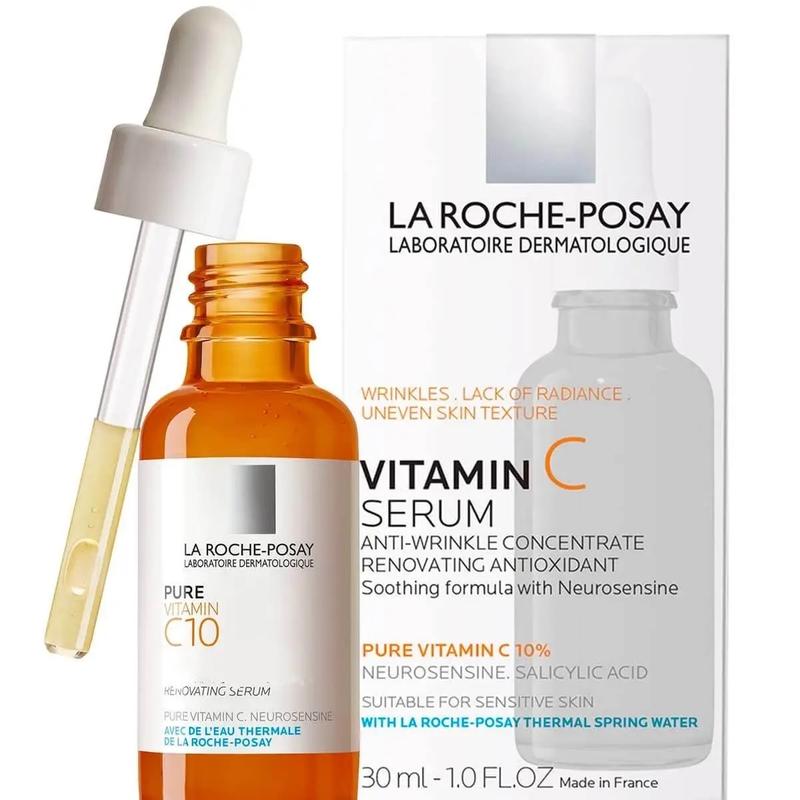 Концентрована сироватка La Roche-Posay Vitamin C10 проти зморщок і для розгладження ідеально підійде для підтримання всіх типів шкіри, включно з чутливою. Це особливо ефективно для шкіри, де вже помітні ознаки старіння, наприклад, обвислий овал, зморшки, зміна кольору та гіперпігментація. Лікування вітаміном C від La Roche Posay надзвичайно ефективне. La Roche Posay Pure Vitamin C10 Serum заметно зменшує знебарвлення, згладжує та відновлює шкіру в будь-якому віці. Повертає обличчю сяйливий, здоровий і молодий вигляд. Сироватку можна використовувати на день і ніч. Якщо Ви наносите її вранці, не забудьте захистити обличчя кремом з ультрафіолетовим фільтром SPF 50+. Тоді Ви уникнете подразнення й належним чином захистите шкіру. Сироватка для обличчя La Roche-Posay Pure Vitamin C10 містить: чистий вітамін С — антиоксидант — стимулює вироблення колагену, зменшує зморшки та тонкі лінії, відновлює сяйво шкіри. гіалуронова кислота — два типи, має зволожувальні властивості та згладжує дрібні зморшки. нейросензин — відомий своїми заспокійливими та протизапальними властивостями. саліцилова кислота — має відлущувальні та згладжувальні властивості. аденозин — запобігає старінню. термальна вода La Roche Posay — цінне джерело вітамінів і мінералів, надає заспокійливу та заспокійливу дію. Сироватка з чистим вітаміном C має легку текстуру, яка не липка та швидко вбирається в шкіру. Формула La Roche Posay створена для оптимального перенесення всіма типами шкіри. Засіб гіпоалергенний і некомедогенний, також підходить для чутливої шкіри. Дерматологічно перевірено. Спосіб застосування: Наносьте щоранку або ввечері на обличчя, уникаючи зони навколо очей. Підходить для всіх типів шкіри. Під час використання сироватки використовуйте захист від сонця хв. SPF 15. Формула сироватки Pure Vitamin C10, що містить чистий вітамін C, може пожовтіти під час контакту з повітрям. Цей процес не впливає на ефективність або чутливість продукту.