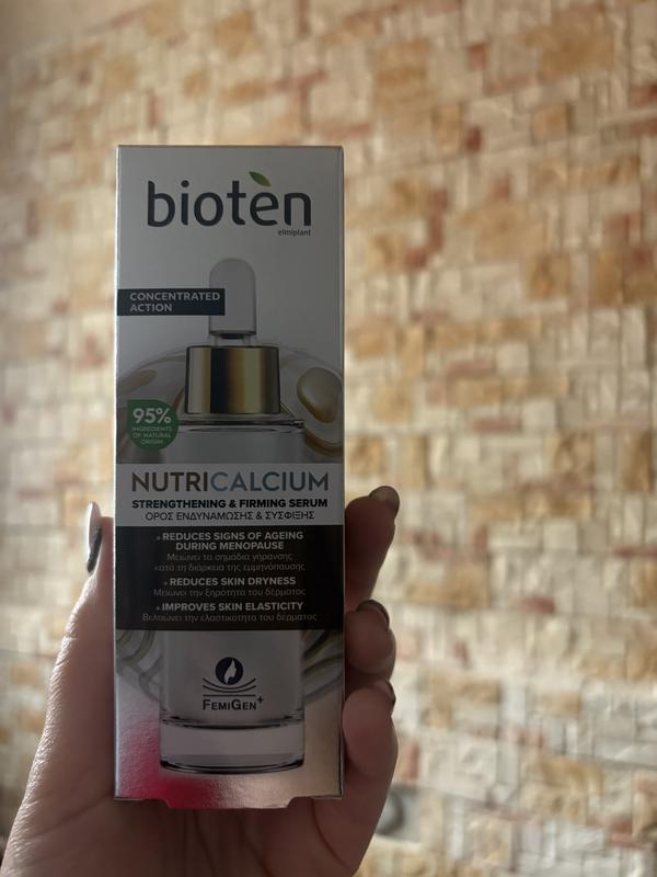 Bioten Nutri Calcium Strengthening & Firming Serum, 30 мл Зміцнювальна сироватка з кальцієм, гіалуроновою кислотою та вітаміном B5, яка підтягує контур обличчя, зменшує зморшки та повертає шкірі пружність. Легко наноситься, швидко вбирається, підходить навіть для чутливої шкіри. Ідеальний вибір для щоденного догляду, коли хочеться помітного результату вже після кількох застосувань. У складі: кальцій, гіалуронова кислота, вітамін B5, бісаболол, алантоїн, гліцерин. Для шкіри: зміцнює, підтягує, глибоко зволожує, заспокоює, робить гладкою та еластичною.