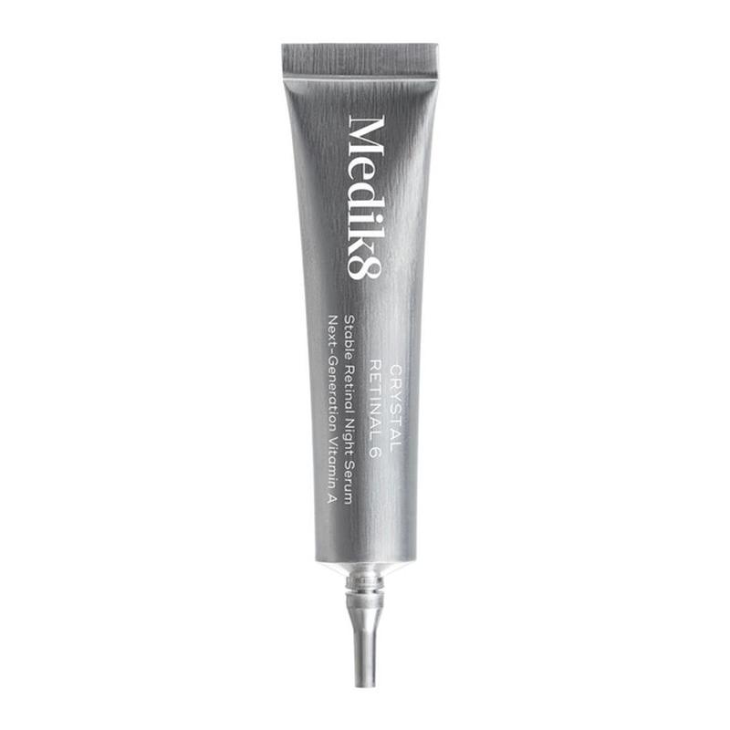 Medik8 Crystal Retinal 6 - Нічна сироватка зі стабільним ретиналем 4ml mini Стимулює вироблення колагену в шкірі, оновлює тонус і поверхню шкіри, зменшує тонкі лінії. Інноваційна формула забезпечує всі переваги ретинолу: антивікову дію, поліпшення сяйва, очищення, плюс таке ж незначне подразнення. Однак завдяки високоефективному ретинальдегіду, вона гарантує видимі результати до 11 разів швидше. Революційна нічна сироватка помітно зменшує тонкі лінії й зморшки, зміцнює й вирівнює текстуру поверхні шкіри, оновлює й покращує тон і тонус шкіри. Завдяки вмісту гіалуронової кислоти, гліцерину й вітаміну Е, формула гідратує шкіру на всіх рівнях, ефективно підвищує тонус і візуально омолоджує шкіру. Крім того, сироватка бореться з патогенними бактеріями, які викликають висипи, тому шкіра стає бездоганною і чистою. Крем-сироватка легко поглинається, живить і насичує шкіру. Має ніжний персиковий колір і приємний ванільний аромат. Зміцнює, гідратує і омолоджує шкіру протягом ночі. Crystal Retinal 6 – нічна сироватка зі стабільним ретиналем, суперпотужним вітаміном А – ідеально підходить тим, хто хоче ще більше поліпшити результативність ретинолу. 0,06% інкапсульованого ретинальдегіду. Інкапсульований ретинальдегід – доведено, що він діє до 11 разів швидше, ніж ретинол. Ретинальдегід – це нова революційна форма вітаміну А, він впливає на тонкі лінії і зморшки, пігментацію і нерівномірну текстуру шкіри. Підходить всім типам шкіри крім чутливої. Активні речовини: Інкапсульований ретинальдегід – доведено, що він діє до 11 разів швидше, ніж ретинол. Ретинальдегід – це нова революційна форма вітаміну А, він впливає на тонкі лінії і зморшки, пігментацію і нерівномірну текстуру шкіри. Гіалуронова кислота – має унікальну здатність притягувати з атмосфери вологу і утримувати до 1000 разів більше води, ніж її власна маса. Забезпечує живлення і пружність шкіри. Вітамін Е – жиророзчинний антиоксидант, нейтралізує вільні радикали в шкірі і стабілізує ретинальдегід для його максимальної ефективності. Гліцерин – натуральний зволожувач, утримує воду
