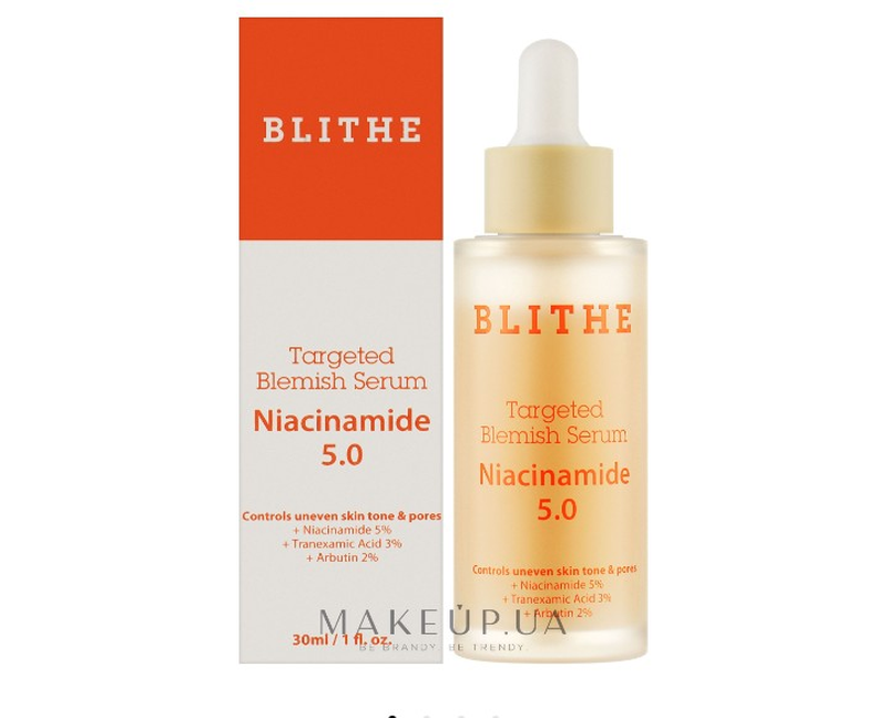Blithe Targeted Blemish Serum Niacinamide 5.0 корейская осветляющая сыворотка для лица. Новая.Термин годности к 07.2027р. Откройте секрет сияющей кожи без пятен! Превратите ее с помощью революционной Blithe Targeted Blemish Serum Niacinamide 5.0 – нежной, эффективной и идеальной для всех типов. Состав осветительной сыворотки тщательно подобран, чтобы решать проблему пигментации, обеспечивая при этом максимально бережный уход. Особенности осветительной сыворотки для лица Blithe Targeted Blemish Serum Niacinamide 5.0: - с 5% ниацинамидом для очистки пор и освещения локальных потемнений; - с 3% транексамовой кислотой для уменьшения темных пятен, образовавшихся в результате скопления меланина; - с 2% арбутином, что снижает выработку меланина и устраняет причину эстетической проблемы; - с фито успокаивающим комплексом, чтобы свести к минимуму риск аллергических реакций; - подходит для всех типов кожи, включая чувствительную; - легко распределяется и впитывается; - не оставляет жирного блеска; - Достаточно насыщенная, при этом крайне деликатная; - создает заметный осветляющий эффект и помогает выровнять тон при регулярном использовании.