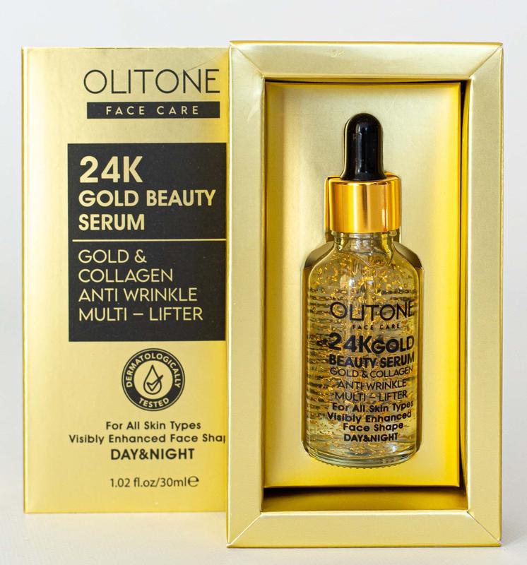 Інноваційна сироватка OLITONE містить колоїдне золото, що сприяє відновленню шкіри на клітинному рівні, заспокоює та живить. Активний склад продукту чудово розгладжує, підвищує тонус шкіри, підтягує контур обличчя, відновлює здорове сяяння шкіри зсередини, а також здатен усувати акне, плями та прояви алергії. Крім того, золоту сироватку збагачено гіалуроновою кислотою і колагеном – натуральними зволожувачами, які підсилюють омолоджуючу дію сироватки та допомагають більш дієво боротися з ознаками старіння. Підходить для всіх типів шкіри. Без парабенів. Не містить шкідливих для здоров’я речовин.