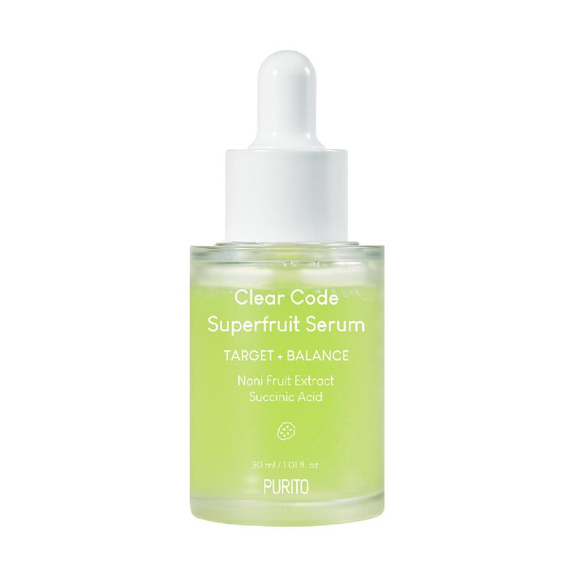 PURITO Clear Code Superfruit Serum — відмінне рішення для проблемної шкіри. Сироватка балансує мікробіом, вирівнює тон та текстуру, регулює вироблення себуму, заспокоює подразнення. Зірковим компонентом засобу є екстракт фруктів ноні, що діє як антиоксидант з протизапальною і освітлювальною дією. Згідно з дослідженнями Корейського інституту дерматологічних наук за 4 тижні сироватка: - прибрала почервоніння та запалення у 66,7% користувачів; - позбавила чорних цяток та закритих комедонів 71,1% користувачів; - змешила виділення шкірного сала у 76,2% користувачів. Підійде для жирної, комбінованої, а також чутливої шкіри. Має легку водичково-гелеву текстуру, миттєво вбирається та залишає після використання відчуття свіжості. Основні компоненти: - Екстракт фруктів ноні — багатий на корисні вітаміни (особливо С та А) та мікроелементи компонент. Блокує меланогенез, заспокоює роздратовану шкіру, а також має антибактеріальні та протигрибкові властивості. - Бурштинова кислота — м’яко відлущує, регулює виділення шкірного сала та підтримує водний баланс. - Ботанічний комплекс (екстракт лотоса, екстракт кедра, фільтрат ферменту цукроміцетів) — допомагає заспокоїти подразнення від зовнішніх чинників. Спосіб застосування: Після очищення і тонізації нанесіть 2-3 краплі сироватки на долоні. Після акуратно розподіліть їх обличчям та шиєю. Можете обережно поплескати для кращого вбирання. Склад: Water, Butylene Glycol, Pentylene Glycol, Dipropylene Glycol, Propanediol, Morinda Citrifolia Fruit Extract, Succinic Acid, Cryptomeria Japonica Leaf Extract, Panthenol, Coptis Chinensis Root Extract, Nelumbo Nucifera Leaf Extract, Saccharomyces Ferment, Glycerin, Betaine, Caprylyl Glycol, Acrylates/C10-30 Alkyl Acrylate Crosspolymer, Arginine, Hydroxyacetophenone, Cetearyl Olivate, Dipotassium Glycyrrhizate, Allantoin, 1,2-Hexanediol, Sorbitan Olivate, Malachite Extract, Ethylhexylglycerin, Xanthan Gum, Disodium EDTA, Citric Acid, Gluconic Acid