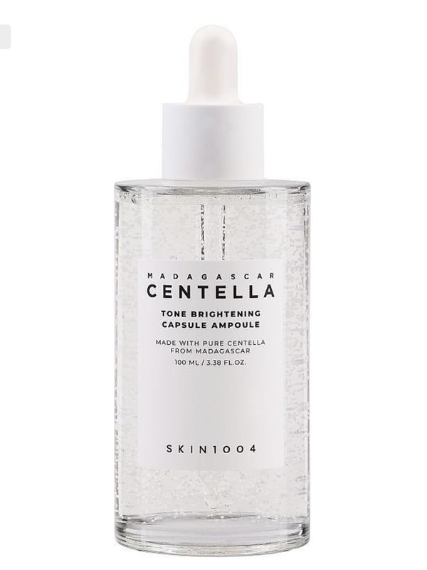 Сироватка з центеллою та ніацинамідом. Купувала напряму із Кореї, 100% оригінал. Не підійшла через індивідуальну непереносимість ніацинаміду. Користувалася 1-2 рази, на фото видно що баночка повна. Шкіра до піпетки не торкалася. 100 мл, 749 грн. SKIN1004 - Madagascar Centella Tone Brightening Capsule Ampoule - сироватка для обличчя на основі екстракту центелли азіатської, що заспокоює шкіру і знімає подразнення. Засіб ефективно освітлює пігментні плями завдяки вмісту ніацинаміду і транексамової кислоти. Пробіотик додатково піклується про зміцнення мікробіому та підвищує стійкість шкіри до впливу зовнішніх факторів, тоді як аргінін зволожує епідерміс. Продукт рекомендований для сухої, тьмяної або чутливої шкіри. Дія засобу: заспокоює подразнення, регенерує, освітлює пігментацію, зміцнює мікробіом, зволожує.