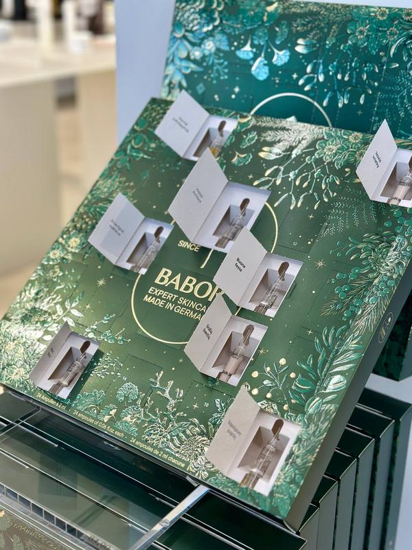 Babor Advent Calendar 2025 4x HYDRA PLUS: Ампульні концентрати Hydra Plus забезпечують багатовимірне зволоження завдяки розумному поєднанню низькомолекулярної гіалуронової кислоти та інших зволожуючих інгредієнтів, створюючи ідеальну основу для сяючої шкіри та основу для подальшого догляду за шкірою. Доданий провітамін B5 захищає шкіру від зневоднення, а також допомагає її заспокоїти. 6x NUTRI RESTORE: Багатство арганової олії та ідентичного шкірі сквалану не тільки забезпечує зволоження, але й зменшує втрату води, спричинену пошкодженням шкіри, утримуючи вологу в шкірі. Це призводить до краще зволоженої та здорової шкіри. Олії мають антиоксидантну дію та містять ненасичені жирні кислоти, які відіграють важливу роль у формуванні та регенерації клітин шкіри. 2x SOS Calming: Заспокійливі ампульні концентрати SOS з алое вера миттєво заспокоюють шкіру та зменшують почервоніння. Шкіра миттєво відчувається більш розслабленою. Активний комплекс також містить сахариди, бетаїн та пантенол для додаткового догляду, зволоження та заспокоєння шкіри. 2xMultivitamin: Активні інгредієнти мультивітамінних ампульних концентратів зміцнюють шкірний бар'єр та надають втомленій шкірі більше життєвої сили, сяйва та свіжості. Додана гіалуронова кислота забезпечує основу для комплексного догляду завдяки своїм властивостям зв'язування вологи та зволоження. 4xPerfect Glow: Ампульні концентрати Perfect Glow діють як миттєвий фільтр краси, особливо для тьмяної шкіри, та надають їй сяючого вигляду. Полісахарид, який вони містять, забезпечує додаткове зволоження шкіри та служить основою для комплексного догляду за шкірою. 6xLift-Expres: Спеціально поєднані інгредієнти ампульних концентратів Lift Express створюють миттєвий ефект ліфтингу для більш пружної та гладкої шкіри.