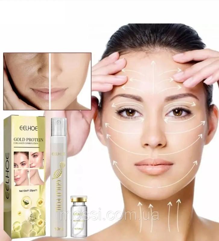 Нить накладывается на влажную кожу. И сразу, увлажняясь, начинает приобретать желеобразную структуру. Впитываемость коллагена можно повысить за счет использования фонофореза. Рекомендуется увлажнить кожу сывороткой. Коллаген внедряется в структуру кожи точечно по линиям, которые определит косметолог, чтобы процедура дала наилучший эффект. При правильном использовании нити способны уменьшить мелкую сетку морщин, сделать кожу более упругой, улучшить ее текстуру. Коллагеновые нити можно использовать в домашних условиях. Расположить колагеновые нити по линиям морщин. Какого эффекта можно ожидать от применения коллагеновых нитей? Подтяжка кожи. Уменьшение морщин, чему способствует коллаген и витамин Е. Увлажнение кожи, на ощупь она становится более мягкой, нежной и шелковистой. Наполняет кожу коллагеном и другими необходимыми веществами. Активизирует выработку собственного коллагена. Делает овал лица более четким и подтянутым. Выравнивает цвет лица. ☝Пептидные коллагеновые нити активируют развитие фибриллярного белка, благодаря которому соединительная ткань разрастается, мелкие и глубокие морщинки разглаживаются, а кожа эффективно подтягивается, выравнивая контуры лица. Продукт работает по технологии ПЦР (полимеразная цепная реакция), ингредиенты мгновенно проникают в глубокие слои кожи, восстанавливают поврежденные волокна, подтягивают и заполняют кожные впадины. ✅Применение: На очищенную кожу нанесите эссенцию / сыворотку, затем наложите сухими руками нити, чтобы они зафиксировались, плотно прилегая к коже. Затем поверх нитей еще раз нанесите эссенцию (уже более обильно). Через 1-5 минут, когда нити растворяются, массирующими движениями распределите по всей коже. Не смывать! Рекомендуется использовать 1-2 раза в неделю курсом не менее 1 месяца. Для поддержки эффекта 1-2 раза в месяц. коллоидное золото 24К; комплекс из 5 видов пептидов; гиалуроновая кислота; ниацинамид; витамин B; аденозин.