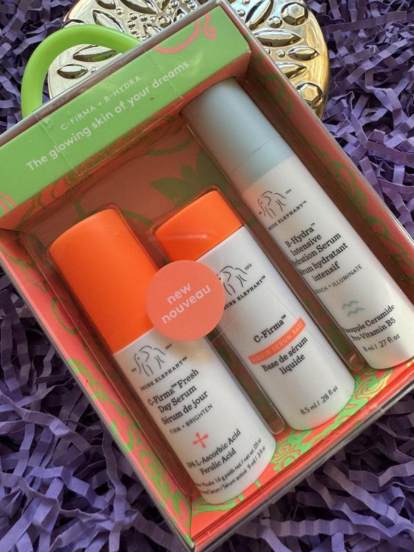 Набор Drunk Elephant Day Dream Set, состоящий из двух основных средств по уходу за кожей, которые помогают сохранить сияющий вид. Набор включает две сыворотки в формате travel size. Состав набора: B-Hydra™ Intensive Hydration Serum 8 мл Утолите жажду кожи с помощью этой бестселлерной сыворотки. Обогащенная ананасовыми церамидами и провитамином B5, освежающая формула интенсивно увлажняет кожу и способствует видимому сиянию. Универсальная формула сыворотки уменьшает видимость мелких морщин. C-Firma™ Fresh Day Serum 9 мл Мощная формула, которая способствует упругости и сиянию кожи. Сыворотка сочетает в себе 15% концентрацию L-аскорбиновой кислоты с витамином E и феруловой кислотой, что помогает обеспечить осветляющий эффект и заметно улучшить тон кожи.