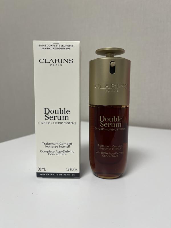 Clarins Double Serum Complete Age Control Унікальний антивіковий засіб, розроблений на основі 20 рослинних екстрактів. Дія активних компонентів направлена на відновлення життєво важливих функцій шкіри. Завдяки інноваційній подвійній формулі засіб забезпечує помітний омолоджувальний ефект. При регулярному застосуванні підвищується пружність шкіри, вона набуває рівного тону і здорового сяйва. Сироватка ефективно зменшує пори і розгладжує зморшки. Властивості: - помітно зменшує ознаки старіння - ефективно підвищує стійкість шкіри - звужує пори, підсилює яскравість шкіри - розгладжує зморшки й покращує текстуру шкіри - збільшує міцність і пружність шкіри - робить шкіру молодою на вигляд - подвійний склад із водяною та ліпідною фазами - упаковка на 94 % виготовлена з матеріалів, придатних до вторинної переробки Вік: 25+ Батч код: 0430030 Обʼєм: 50 мл.