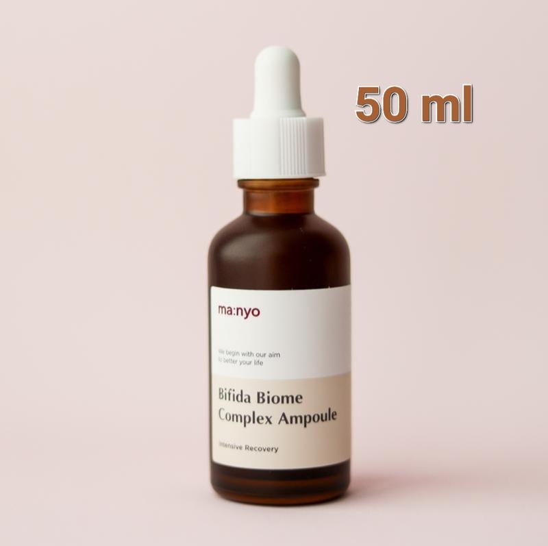 50 мл. Омолоджуюча ампула з лізатів біфідобактерій Manyo Bifida Biome Complex Ampoule прискорює процеси регенерації та оновлення клітин епідермісу, вирівнює тон шкіри і повертає їй сяйво. Ампула має яскраво виражену омолоджуючу дію, зменшує глибину мімічних зморшок. Завдяки входять до складу пробіотиків та біфідобактерій, засіб підтягує овал обличчя, розгладжує шкірні заломи, підвищує еластичність тканин, попереджає в'ялість і обвисання шкіри. В состав ампулы входит комплекс, состоящий из 10 видов гиалуроновой кислоты, который направлен на глубокое интенсивное увлажнение кожи и предотвращение обезвоженности кожи. Основные действующие компоненты:Лизат бифидобактерий — комплекс биологически активных веществ, полученных методом биофрагментации из лизата бифидобактерий. Обладает мощнейшими восстанавливающими, репаративными и защитными свойствами. Стимулирует пролиферацию фибробластов — основных клеток соединительной ткани. Этот факт объясняет великолепную способность крема разглаживать морщинки и делать кожу гладкой и ровной.Лактобактерии — осветляют, увлажняют, устраняют покраснения, регулируют выработку меланина в эпидермисе, мягко отшелушивают ороговевший слой и ускоряют процессы регенерации.Гиалуроновая кислота — создает на коже невидимый барьер, препятствующий испарению влаги, улучшает структуру кожи, способствует регенерации эпидермиса, сокращает мелкие морщинки, делает кожу гладкой и нежной.Аденозин — мощный омолаживающий компонент. Подтягивает кожу, усиливает выработку коллагена, способствует уменьшению количества морщинок, тормозит процессы увядания.