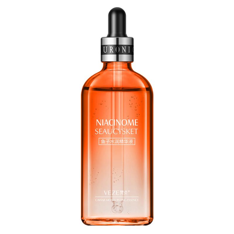 Сыворотка с экстрактом икры Veze Cavair anti-aging глубоко проникает в кожу, поддерживает оптимальный уровень увлажнения, концентрирует влагу в глубоких слоях кожи. Заметно повышает упругость кожного покрова и оказывает двойное омолаживающее действие, которое выражается в разглаживании морщин и осветлении пигментации. Регулярное применение сыворотки приводит к уменьшению существующих признаков увядания: сеточка мелких морщин разглаживается, а глубокие становятся менее выраженными, кожа укрепляется, овал лица становится более четким. Кроме того, сыворотка предупреждает появление новых морщин, замедляет процессы старения кожи. В составе: - Экстракт икры — это мощнейший омолаживающий концентрат. В икре содержится около 30% высокоценных белков и сильнейшие природные антиоксиданты омега-3 полиненасыщенные жирные кислоты. Они активно противостоят повреждению клеток кислородом и продуктами его активности, эффективно прекращают хронические воспаления, тем самым не позволяя разрушаться коллагену, тормозят ключевые механизмы старения кожи, защищают ее от воздействия ультрафиолета и уменьшают чувствительность кожи к внешним воздействиям. Она богата витаминами A, D, Е и С, микроэлементами, протеинами и фосфолипидами. Фосфолипиды помогают в увлажнении кожи, делают ее гладкой, протеины повышают упругость. Икра как бы пробуждает кожу, заново запуская процессы регенерации клеток. Омоложение начинается изнутри: овал лица и контуры тела становятся четче, морщинки разглаживаются. - Гиалуроновая кислота связывает и удерживает молекулы воды в клетках кожи и способствует поддержанию уровня влажности кожи. Она стимулирует работу фибробластов, которые отвечают за образование коллагена и эластина. Также она выполняет другие важные функции — усиливает коллагеновые волокна, улучшает тонус и упругость, повышает местный иммунитет кожи. Улучшает рельеф кожи, предупреждает и замедляет старение кожи, разглаживает морщины, эффективно увлажняют и защищают кожу, предотвращает формирование рубцов. Обладает противовирусным, бактерицидным, ранозаживляющим действием. Подходит для всех типов кожи. Способ применения: нанести на очищенную кожу лица несколько капель сыворотки и распределить поглаживающими движениями, а затем приложить ладони на несколько секунд к лицу, чтобы их тепло помогло сыворотке максимально впитаться. Далее можно наносить лосьон - эмульсию - крем. Также подходит для использования под мезороллер. Объем: 100 мл