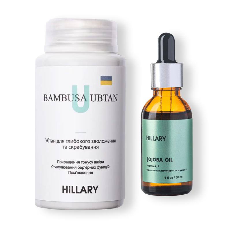 Комбінація Убтан Bambusa та Олія Жожоба — це чудове поєднання для дбайливого догляду за обличчям. Убтан Bambusa забезпечить необхідний догляд за сухою та чутливою шкірою, ефективно очистить епідерміс, при цьому не пересушуючи його, даруючи відчуття чистоти та свіжості. А Oлія Жожоба зробить шкіру еластичнішою, глибоко очистить пори та нейтралізує запальний процес. До набору входять: - Натуральне масло для обличчя та волосся Hillary JOJOBA OIL, 30 мл; - Убтан для глибокого зволоження та скрабування Hillary BAMBUSA UBTAN, 100 г. Спосіб застосування: 1. Невелику кількість порошку насипте на руку, додайте трохи води та розведіть до пастоподібного стану. Нанесіть на зволожене обличчя, обережно розподіліть по всьому обличчю, помасажуйте та змийте. Можна застосовувати два-три рази на тиждень. 2. Нанесіть лише кілька крапель олії жожоба на очищене зволожене обличчя. Втирайте масажними рухами до повного вбирання. Beauty-хак: Олію жожоба також можна використовувати для волосся. Вона вирішує проблему випадіння волосся, викликаного такими захворюваннями, як дерматит шкіри голови, псоріаз і екзема. Робить волосся більш блискучим, зводячи до мінімуму його пошкодження внаслідок зовнішніх чинників. Корисно втирати олію жожоба в корені волосся за 15-20 хвилин до їх миття. Можна додати до свого шампуню для волосся — по 3-5 крапель в кожну порцію при митті. Наносьте олію жожоба на гребінець і розчісуйте волосся 2-3 рази на день.