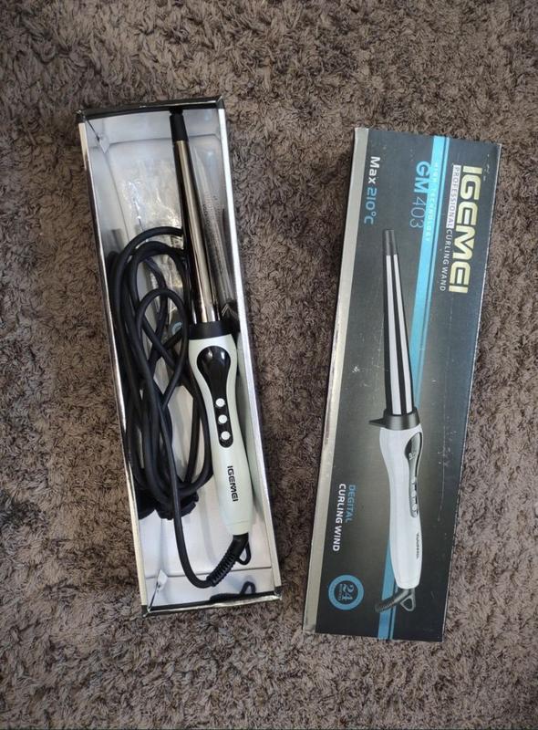 Плойка для завивки конической формы Geemy GM-40 имеет температуру нагрева от 80 до 210 градусов с пошаговым терморегулятором. Специальное титаново-турмалиновое покрытие обеспечивает безопасное использование плойки с щадящим воздействием на структуру волос. Индикатор включения и готовность к работе, а также температура нагрева отображаются на ЖК-дисплее модели
