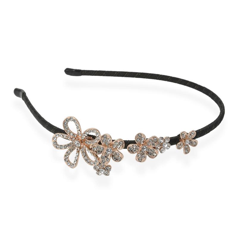 Обруч 14124 Обруч для волос черного цвета с декором из металлических цветов со стразами наверняка понравится дамам любого возраста. Ободок плотно держится на голове, не соскальзывает и не деформирует укладку. С его помощью можно поднять волосы вверх, убрав их от лица, или использовать в декоративных целях, просто украсив обручем прическу. Изделие имеет прочную металлическую основу, обтянутую черной тканевой лентой. Мягкое полотно не будет путаться в волосах, и не вырвет локоны при снятии ободка. На концах имеются накладки, которые защищают кожу головы от непроизвольного травмирования. Универсальный размер ободка подходит для комфортного ношения как взрослым, так и маленьким принцессам. Ободок имеет очень красивое оформление: чуть сбоку от центра расположена целая цветочная композиция. Стеклянные стразы, украшающие обруч, нежно сияют на солнце и будут приковывать взгляды окружающих. Все материалы изделия прочные и долговечные, благодаря чему аксессуар долго будет радовать свою обладательницу. Ободки продаются комплектом из двенадцати штук. Такой набор точно найдет свою хозяйку или станет шикарным подарком.