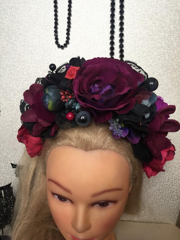 Глибокий та колоритний обруч(вінок) стане чудовим доповненням вашого образу, підійде на волосся різної довжини.Поєднує в собі насичені відтінки синього кольору,квіти зроблені з атласу та фатину, бісеру, перлин і т.д..Творіння гармонічної композиції цього віночка відбувалась виключно в гарному настрої та позитиву.Для нас дуже важливо проявляти в наших роботах енергію любові сотворіння)... При експлуатації даного виду товару слід враховувати : 1)одягайте віночок-обруч фронтальною стороною та що, зазначена на фото. 2)квіти та елементи міцно закріплені, але відривати їх не слід, а також не реккомендуємо піддавати вінок-обруч температурі вище +50 градусів. 3)бережливе ставлення. Колоритный обруч дополнит Ваш образ и прическу, подойдет на волосы любой длинны .Обруч сочетает в себе разнообразие глубоких темных оттенков цветов, тычинок, плодов и т.д . Создавался в гармоничную композицию, исключительно, в хорошем настроении и позитиве. Для нас очень важно передать в своих работах чудесный настрой энергии творения и созидания, все роботы на сайте сделаны с Любовью и для вас! Основа обруча метал,обмотан ленточкой с подложкой.Рекомендации по уходу: 1. Обращайте внимание на закладку композиции,чтобы она была нужной вам фронтальной стороной(она показана на фото). 2. Цветы достаточно прочно приклеяны ,но отдирать и превышать температуру нагревания выше 50 градусов не стоит. 3. Бережное отношение. Ручная работа .тканевые цветы .высота 5-8 см