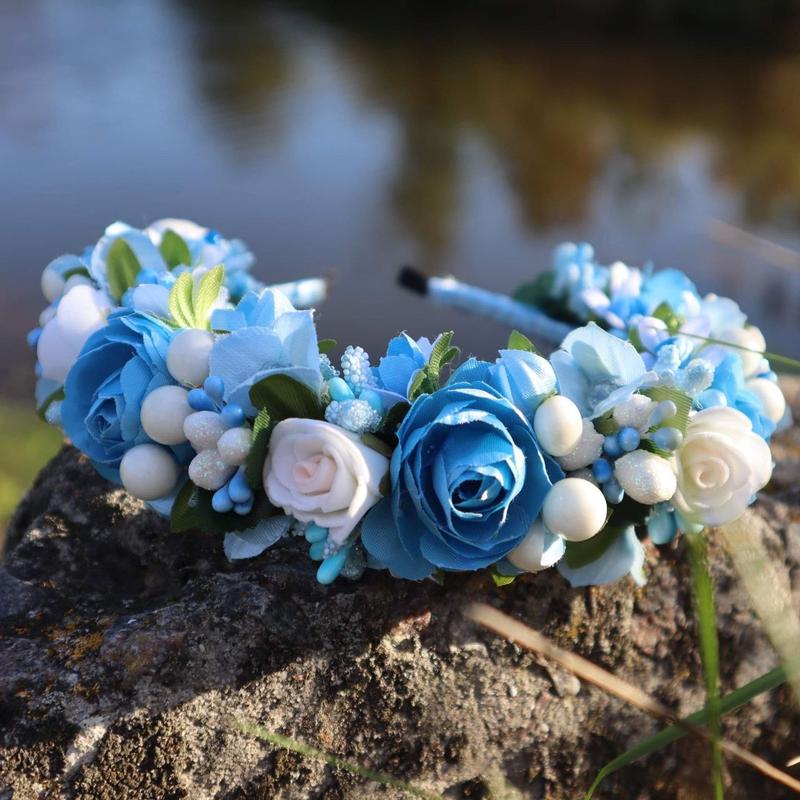 Обруч голубой цветы детский, обруч к вышиванке в цветы,