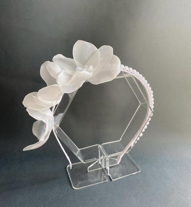 Обруч для девочки, цветы из ткани и расшитый бусинами
