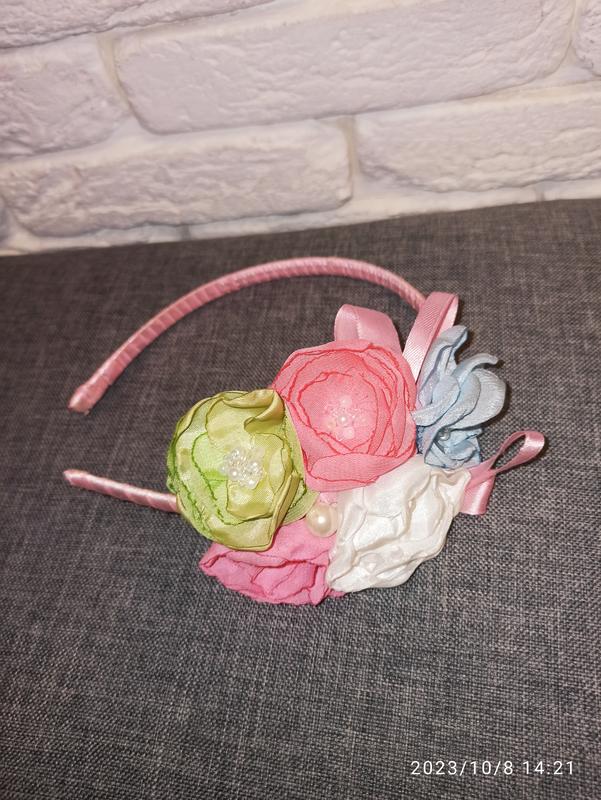 Ручная работа. В хорошем состоянии. Красивенный обруч - 5 разноцветных цветочков с бусинами по центру, еще украшен ленточкой. Смотрится так нежно, воздушно. Обруч очень удобный, нигде не давит, сидит классно. Будет на девочек начиная с садиковского возраста и до подросткового точно! Дочке 12 лет- отлично сидит и сейчас. Делался под заказ, ручная работа. Станет дополнением и изюминкой в вашем образе)