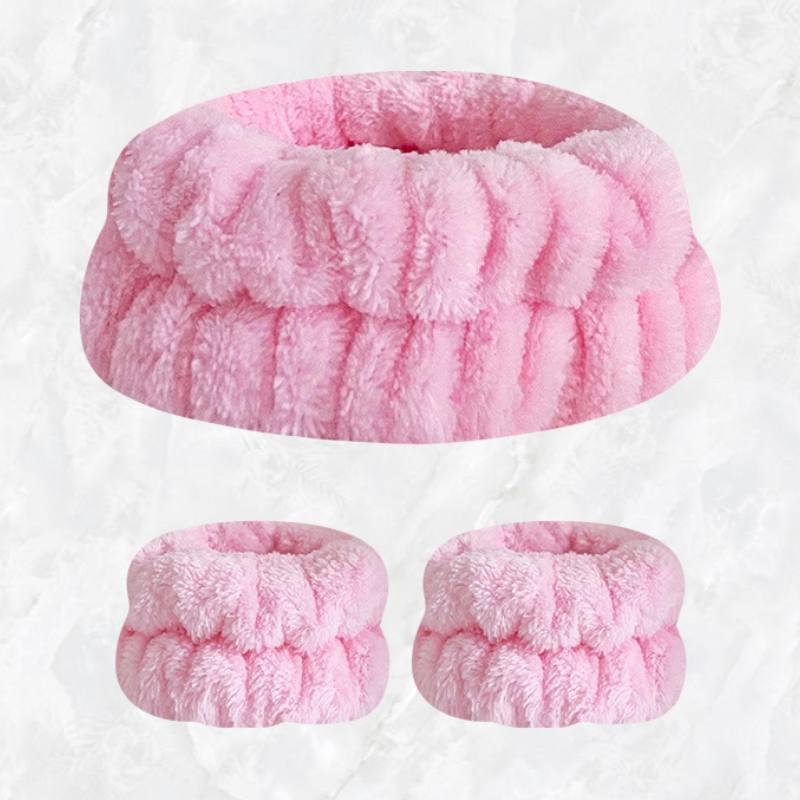Набір для вмивання (пов'язка та напульсники). рожевий