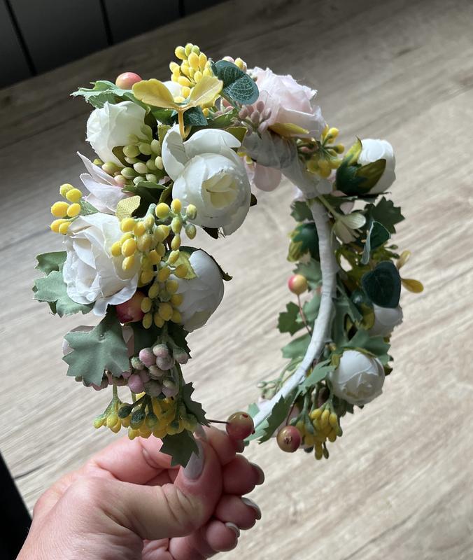 Весенний и очень нежный обруч из разнообразных цветочков и листочка.Размер обруча универсальный.Ще есть в наличии другие варианты, присмотритесь ко мне объявления❤️Сделано с любовью.