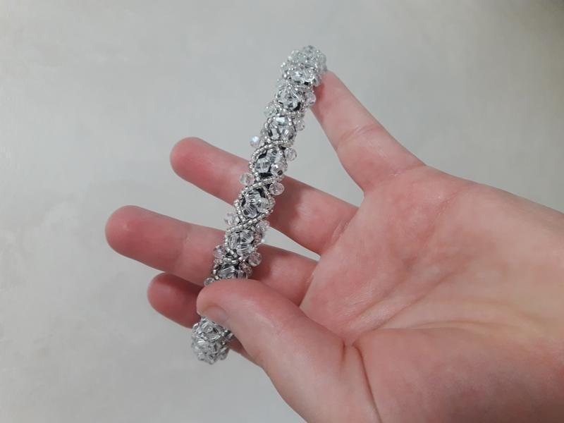 Обруч для волос с прозрачными бусинками. Эффектно смотрится, переливается и имеет опрятный вид. Подойдет под платье, джинсы. Размер универсальный. Made с любовью.❤