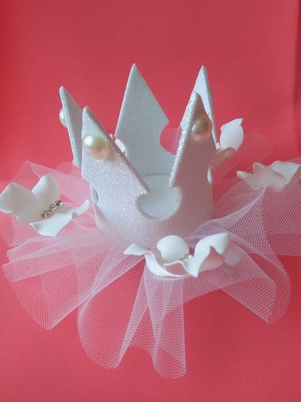 Корона ручной работы. Выполнена из глітерного фоамірану, бабочки ручной работы из иранского фоамірану со стразами. Высота короны 5,5 см. Диаметр фатинової основы 12 см. Возможно исполнение в другом цвете, с выбором фурнитуры (обруч, повязка, заколка). Такой аксессуар прекрасно дополнит праздничный волшебный образ девочки. Товар под заказ