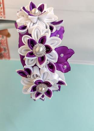 Обруч для девочек. Сделано из атласных лент белого и фиолетового цвета.