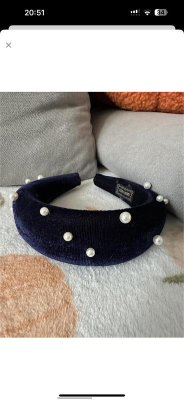 темно-синій оксамитовий обруч для волосся YouBella з перлами.