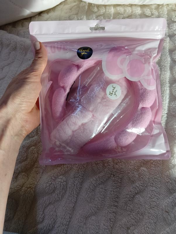 Комплект, складывается до ох единиц. Обруч для волос, и навязка на руки. Мягкие, нежно розовые.
