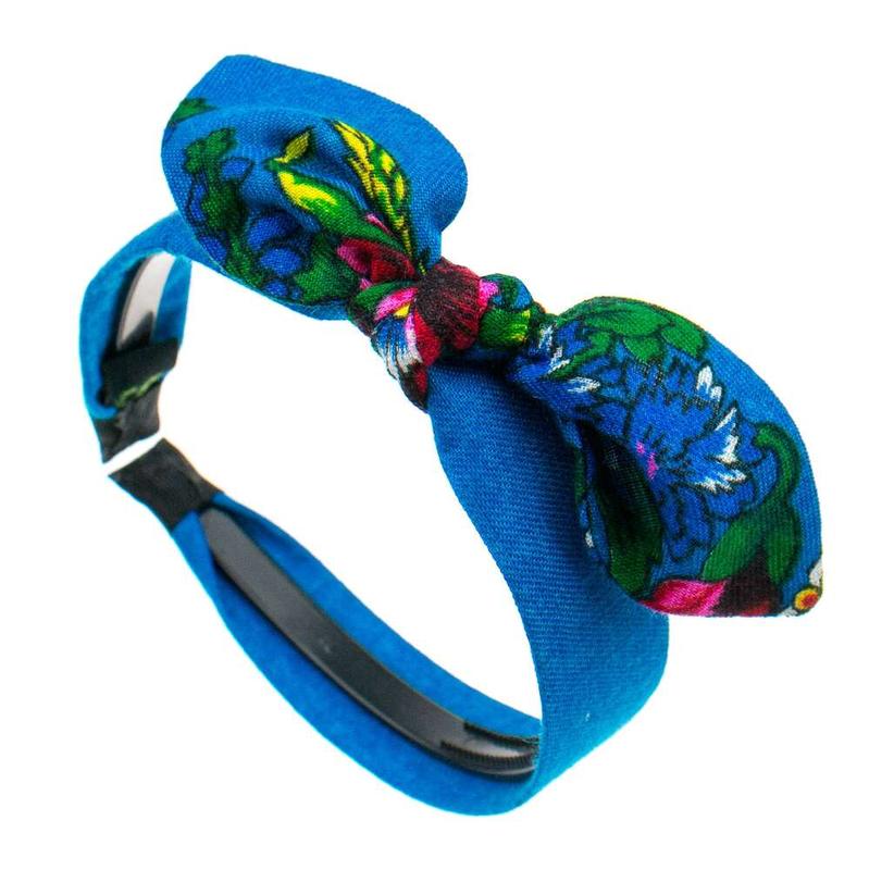 Обруч для волосся №934 має гнучку пластикову основу та оздоблений квітковою тканиною з хустки. Звертаємо вашу увагу, що розміщення квіткового паттерна може змінюватись, тому всі обручі, навіть одного кольору, трошки відрізняються.