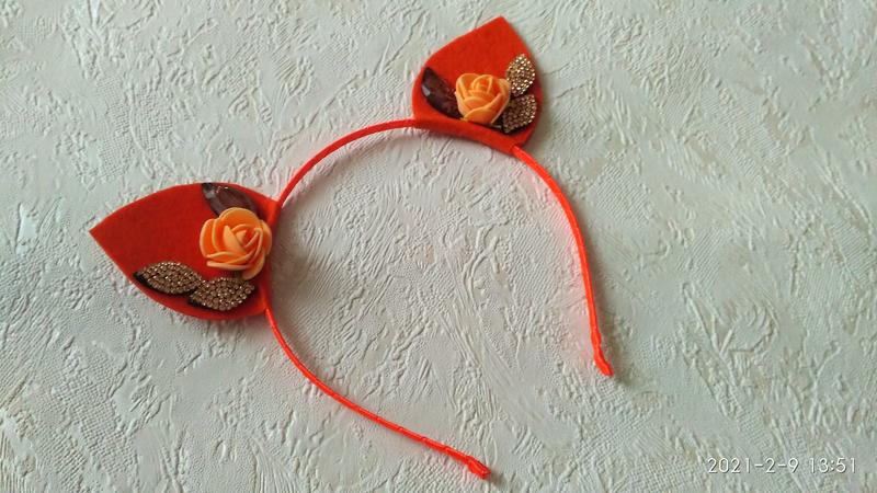 Тематический обруч с ушками лисички Основа - обруч универсальный металлический, оплетенный лентой. Подходит на возраст от 3-х лет и для взрослых. Стоимость - 120 грн. Доставка укрпочтой, новой почтой. оплата на карту ПриватБанка или безопасная оплата весь мой ассортимент украшений к костюму белочки/лисички можно посмотреть, забив в поисковике сайта: обруч белочка (лисичка) v.j.v.
