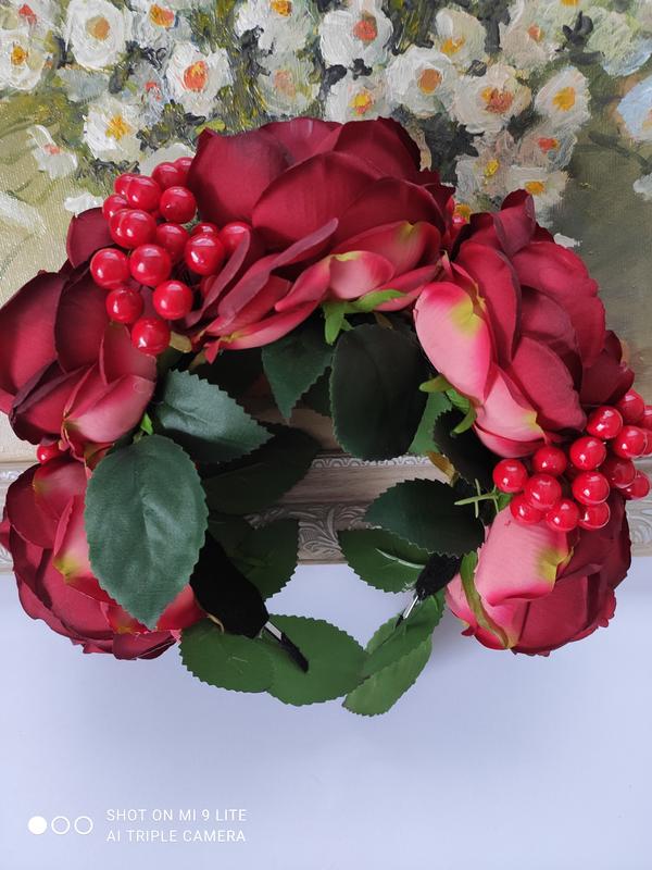 Стильный и изысканный венчик!! Хорошо подойдет к вышитому платью, блузке!!! Венок практичный, обруч железный, будет служить долго!