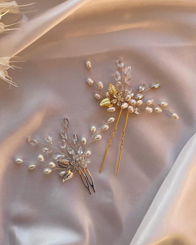 Прикраса для зачіски, ручної роботи з натуральними перлинами і фіанітами.