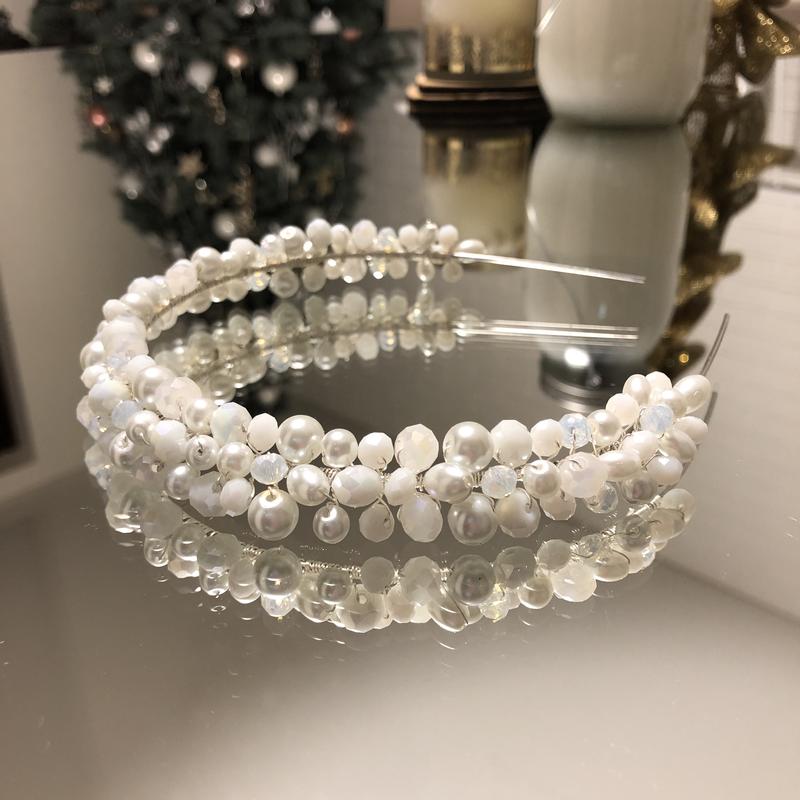 Обруч KARALIN Дуже гарний стильний в світлих тонах Перлинки та хрустальні бусіни