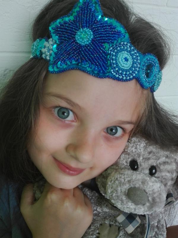 Повязка на голову вышитая бисером, ручная работа, размер универсальный.