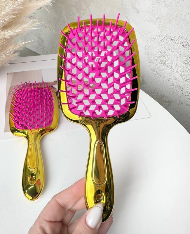 Гребінець хромований для волосся "super brush" золотий з малиновим у пакеті