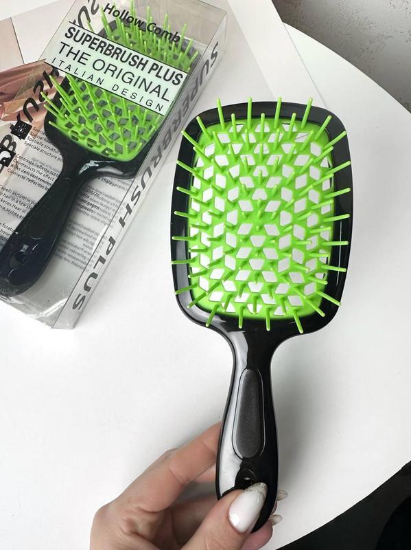 Гребінець для волосся чорний з неоновим салатовим "super brush" в коробці