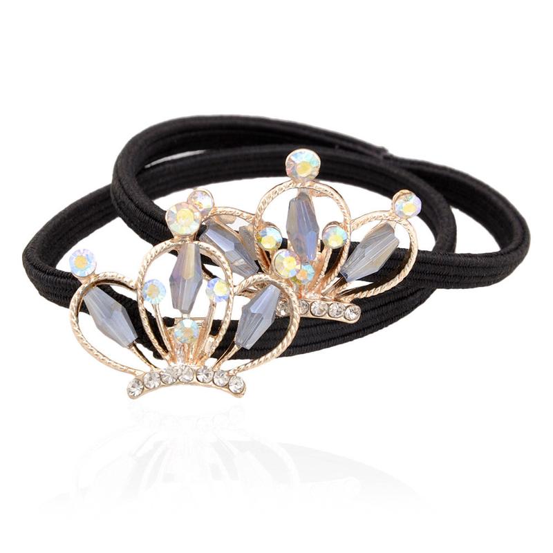 Резинка 1012404 Эластичная черная резинка для волос, украшенная красивой фигуркой короны, подчеркнет яркую индивидуальность и неповторимость своей обладательницы. Этот элегантный аксессуар прекрасно подойдет к любому стилю одежды: строгому деловому костюму добавит женственности, а повседневному образу придаст легкую нотку роскоши. Резинку наверняка по достоинству оценят как взрослые женщины, так и маленькие принцессы. Резинка сшита из полотна высокого качества. Она очень эластичная, и легко принимает нужную форму. С помощью этого аксессуара можно соорудить множество вариантов прически от самых невообразимых до обычного конского хвоста. Резинка украшена металлической фигуркой, имеющей форму короны. Она выполнена искусственными стеклянными камнями и продолговатыми бусинами. Есть несколько вариантов окраски декора: синий, серый, коричневый, голубой и комбинация нескольких цветов. Резинка невероятно бережно относится к локонам — не создает излишнего давления, не путается в волосах, а при снятии не вырывает пряди. Стразы плотно приклеены к каркасу. Все материалы изделия очень хорошего качества. Украшение не потеряет привлекательный внешний вид даже при ежедневном использовании. Аксессуары продаются наборами по двенадцать резиночек.