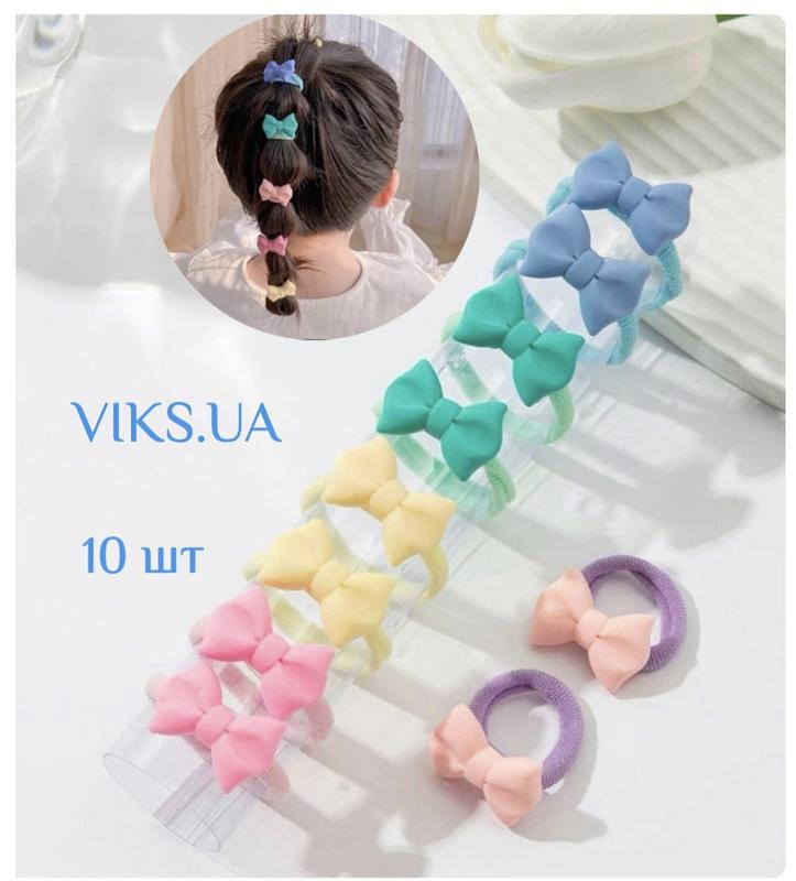 Набір дитячих гумок діаметром 1,5-2 см, надійне кріплення та еластична гумка. В наборі 10 шт.