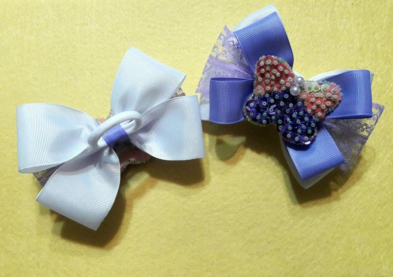 Бантик для волос на резинке, ручная работа. Материал лента атлас + кружево Турция.Цена указана за 2шт.