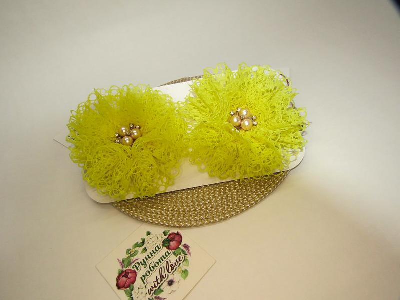 Бантики из. кружева, крепления резинка. Размер на фото.