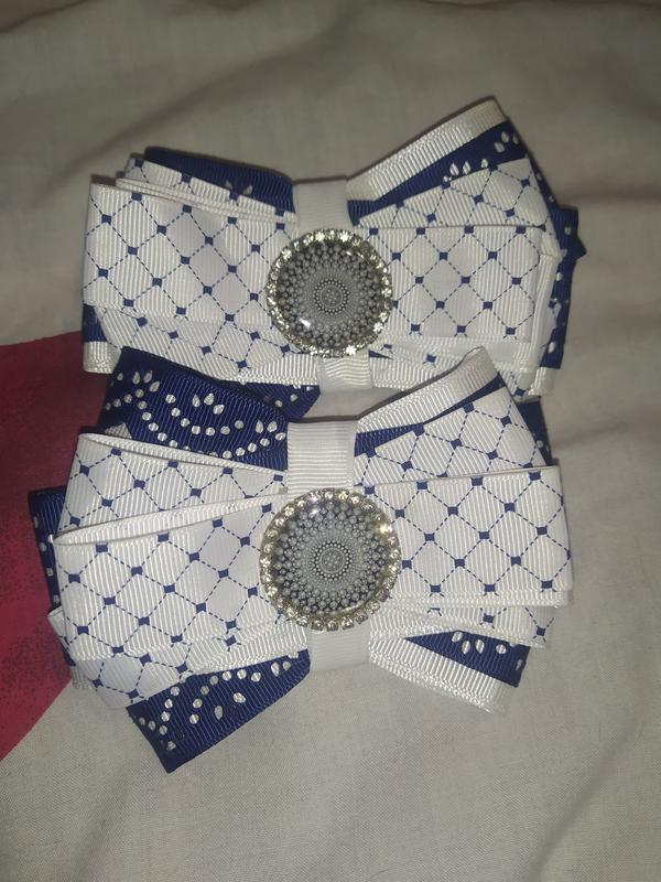 Красивые банты - резинки для волос ручной работы. В бело-синем цвете. Цена за пару. Поштучно не продаются! Присылаю по почте, также возможна встреча в городе.